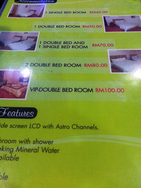Kalau datang secara solo, boleh amek bilik berharga RM40, ada satu single bed. Kalau datang dengan marka atau bini berdua sahaja, boleh sewa bilik berharga RM50, ada 1 queen bed. Kalau makin ramai ahli rombongan, makin meningkatlah harga bilik tapi maksimum boleh muat pun 4 orang sahaja, bilik berharga RM80, ada 2 queen bed.